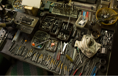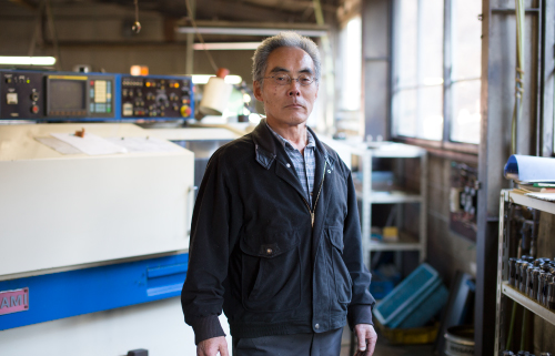 よく手入れされた工具類、機械油の匂い、製品を加工した際にでた金属の切削くずのきらめきに、昔ながらの金属加工職人を思う。まさに昔ながらの町工場だが、会社があるのは、町というより山あいだ。鋳物のダルマストーブに端材を焚いて暖を取り、池上社長は黙々と機械に向かう。昔は車の油圧ホースの金具づくりがメインだった。その経験を活かし、今はさまざまな製品の二次加工も含めた金属加工を手がける。