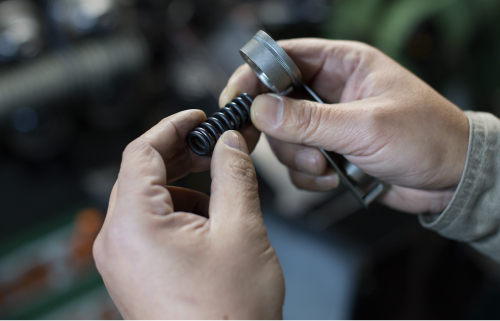 身の回りには、見えるところにも見えないところにも多種多様なバネが使われている。コウリョウのバネの守備範囲もとても広い。太さにして0.4ミリ〜7.0ミリ、製造個数も2個3箇という小口受注があれば、月産50万本の量産もする。引っ張る、押す、捻るなどその機能もさまざまだ。農家で大活躍する軽トラックの荷台や、出前持ちの定番バイクにもここのバネが活躍している。