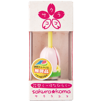 製造業ご当地お土産プロジェクトとして初の製品です。天下一の呼び声高い髙遠の桜に着想を得えて、直径2センチのステンレス製コマの上に5弁の花びらをつけました。コマを回すと遠心力で花が開き、回転が低くにつれ、花びらはゆっくりと閉じてゆきます。