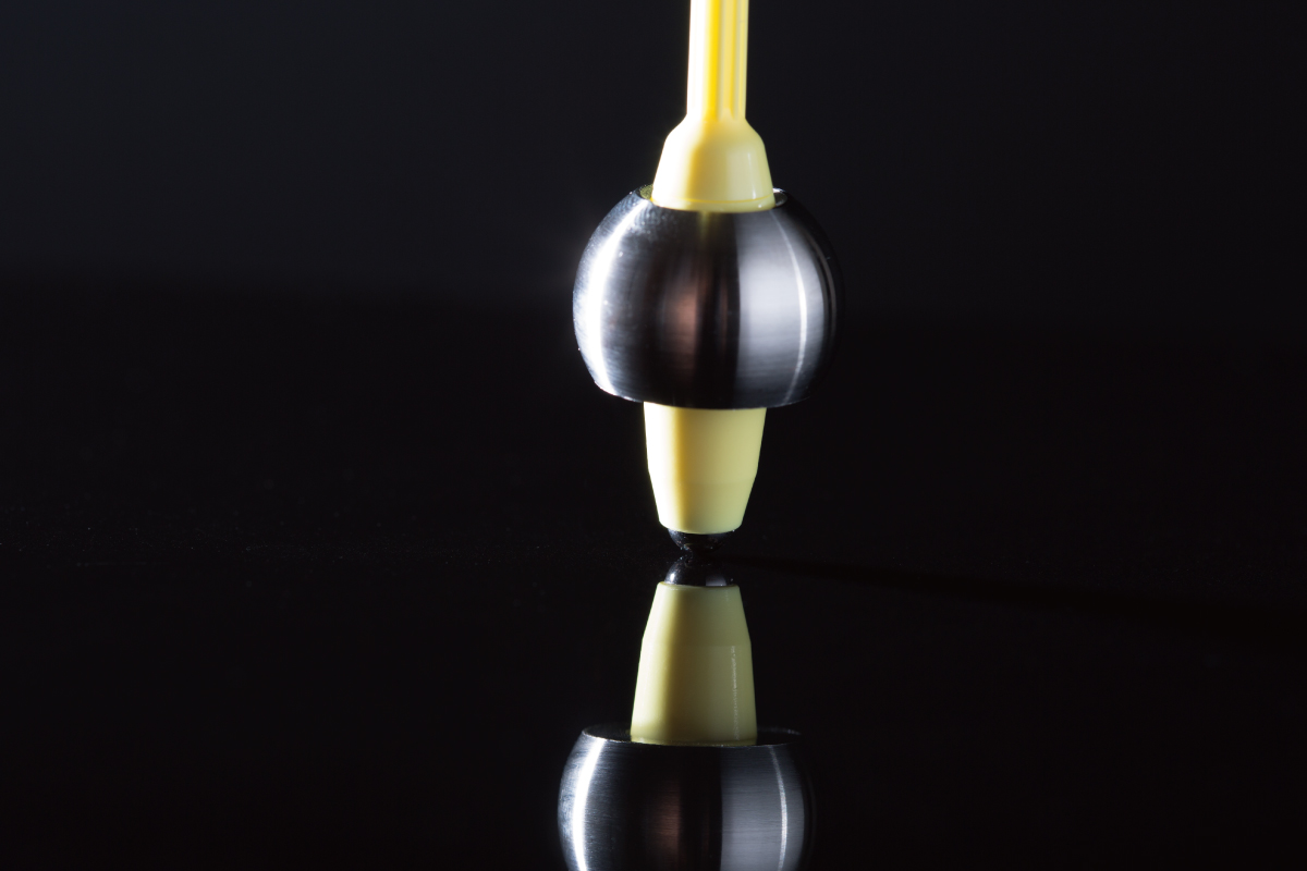 敵のコマとぶつかっても、つつかれても倒れないど根性。その秘密は、斬新な発想の高重心設計と、バランスのよさを生み出す高精度加工技術にあります。